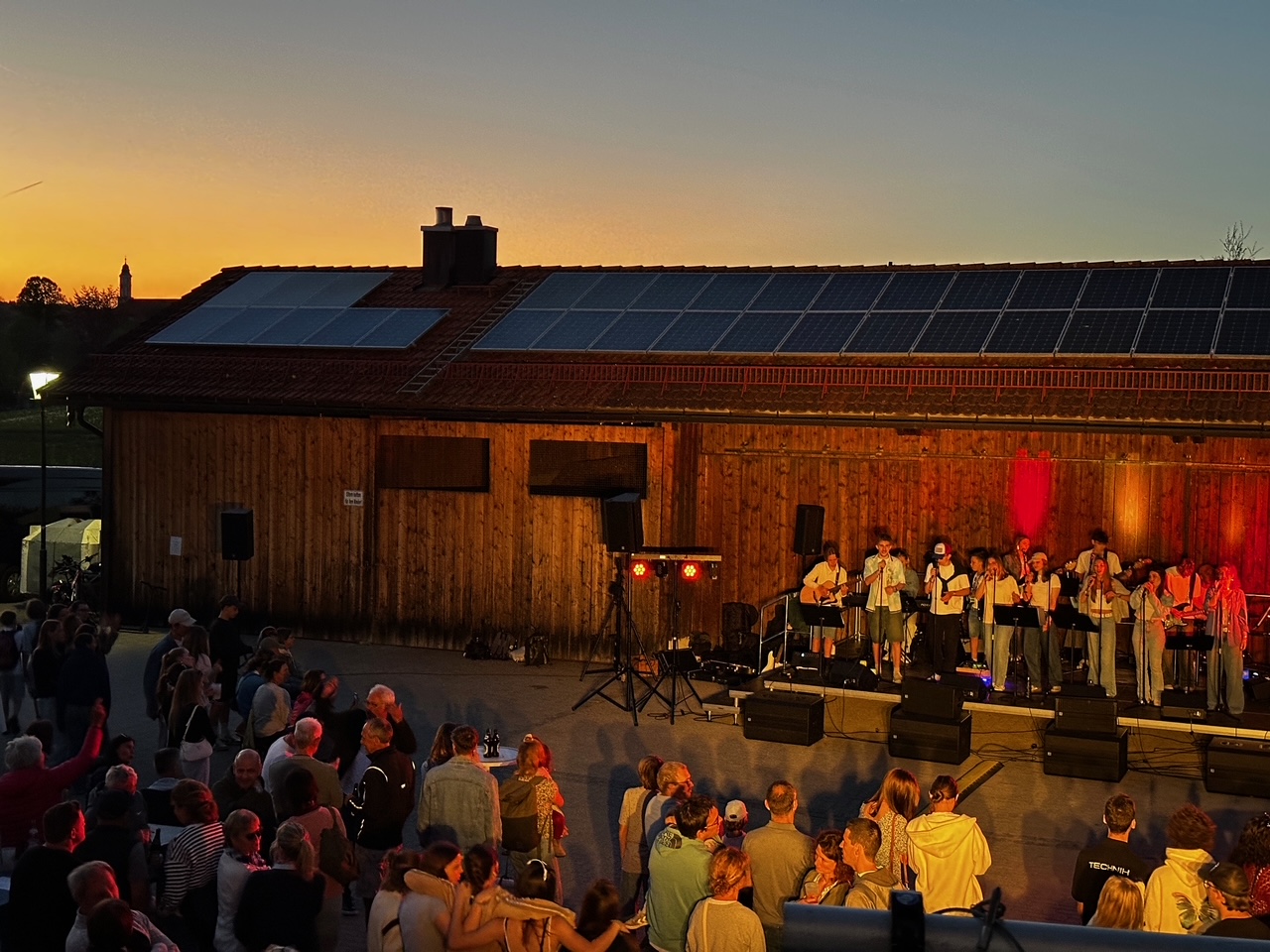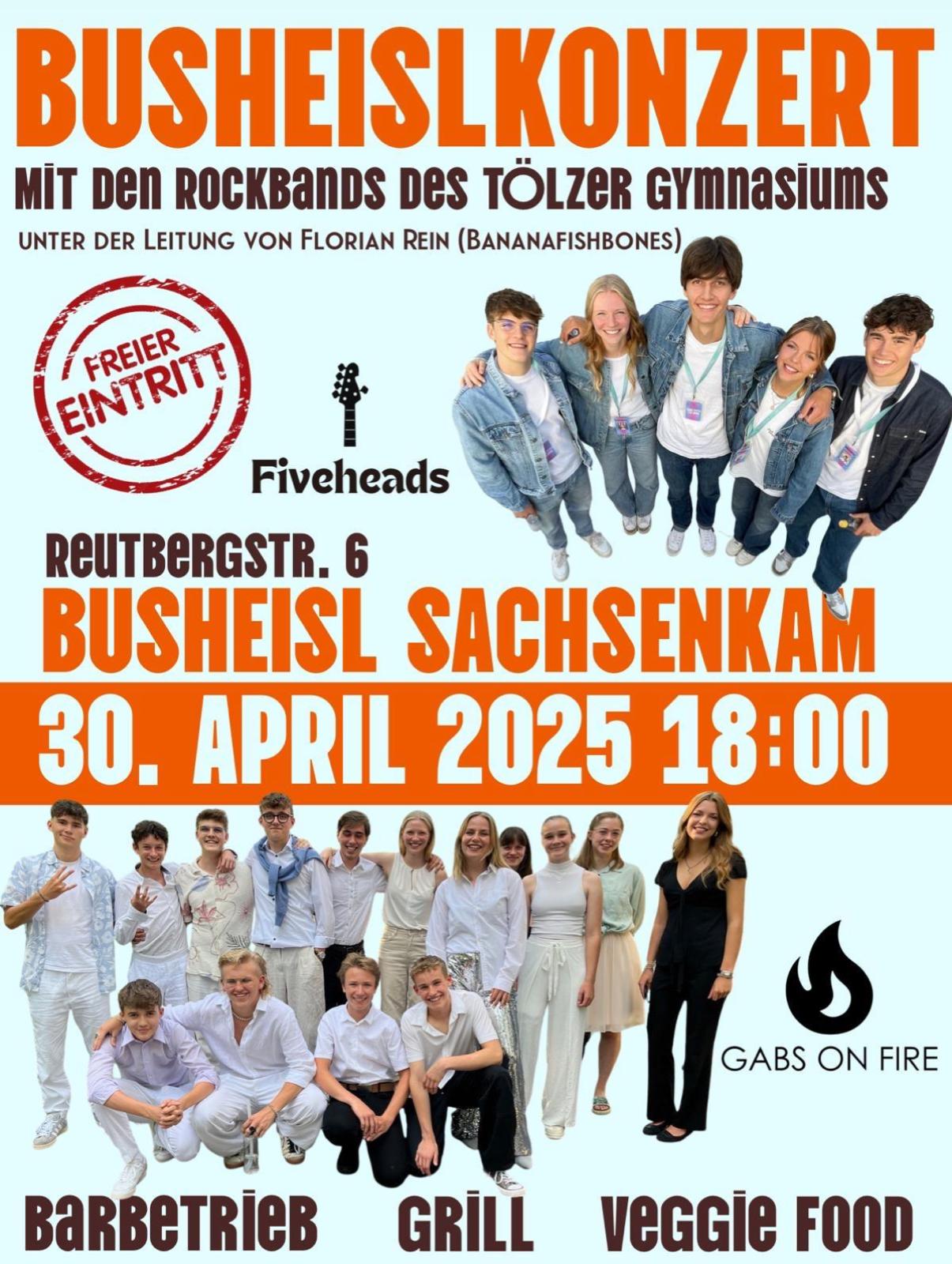 „Das war ein Fest! Wahnsinn!“ So Tom Strobl, Vorsitzender des Förderkreises für das Haus für Kinder. „Fantastisches Wetter, fantastische Bands, fantastische Gäste, fantastische Teamarbeit.“ Bei der aktuellen Auflage der Sachsenkamer „Busheislkonzerte“ am Mittwochabend vor dem 01. Mai passte alles. Entspannte und lässige Stimmung war schon beim Kindergartenfest am Nachmittag aufgekommen. Sie übertrug sich nahtlos auf den Start in den Abend mit untergehender Sonne und der Band des Gabriel-von-Seidl-Gymnasiums Bad Tölz "Gabs on Fire“. Die 15 Schülerinnen und Schüler nahmen die um 18.15 Uhr schon zahlreichen Gäste mit auf ihre musikalische Reise durch die Klassiker der Rockmusik. Der Spannungsbogen der Auswahl steigerte sich ebenso wie die immer größer werdende Beteiligung von Besuchern aus Dorf und Umland. Nach einer Pause sorgten die „Five Heads“ für Furore, eine Band, die sich aus der Schulband ausgegründet hat. Im Hintergrund managte ein Technik- und Support-Team von Schülerinnen und Schülern die eindrucksvolle Bühnen-, Light- und Sound-Technik. Das Gesamtpaket stand unter der Leitung von Florian Rein (Bananafischbones, The Heimatdamisch). Bei bilderbuchmäßigem Abendrot zog die stimmige Verbindung von Musikern und Zuhörenden alle in ihren Bann. Speis und Trank, vorbereitet und angeboten vom Team vom Haus für Kinder und Mitgliedern des Elternbeirats taten ein Übriges zur rundum begeisternden Atmosphäre. Die Überschüsse werden zugunsten der Einrichtungen im Haus für Kinder verwendet. Abschließend gab es eine gemeinsame Performance der beiden Bands, die im Beatles-Klassiker „Hey Jude“ ihren Höhepunkt fand. Stimmungsvoll!