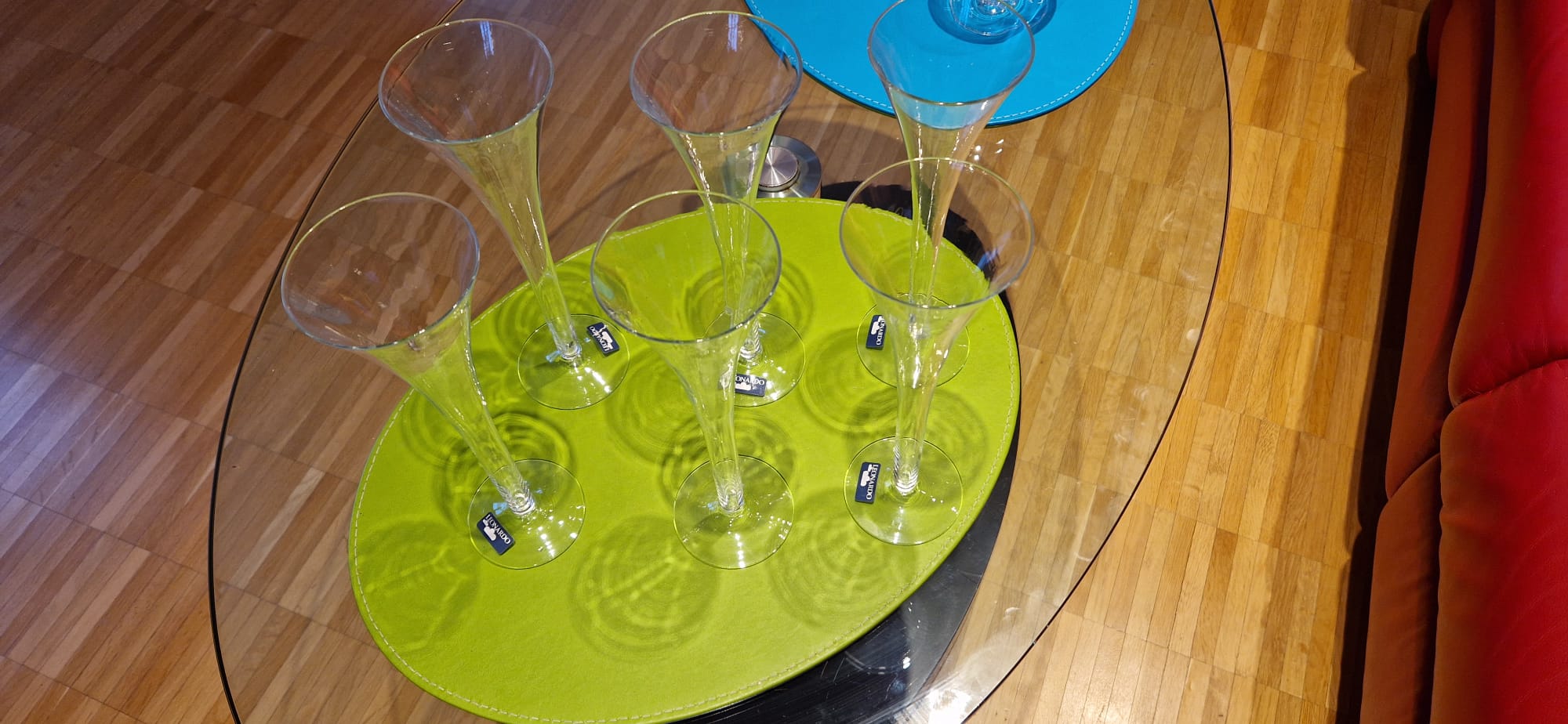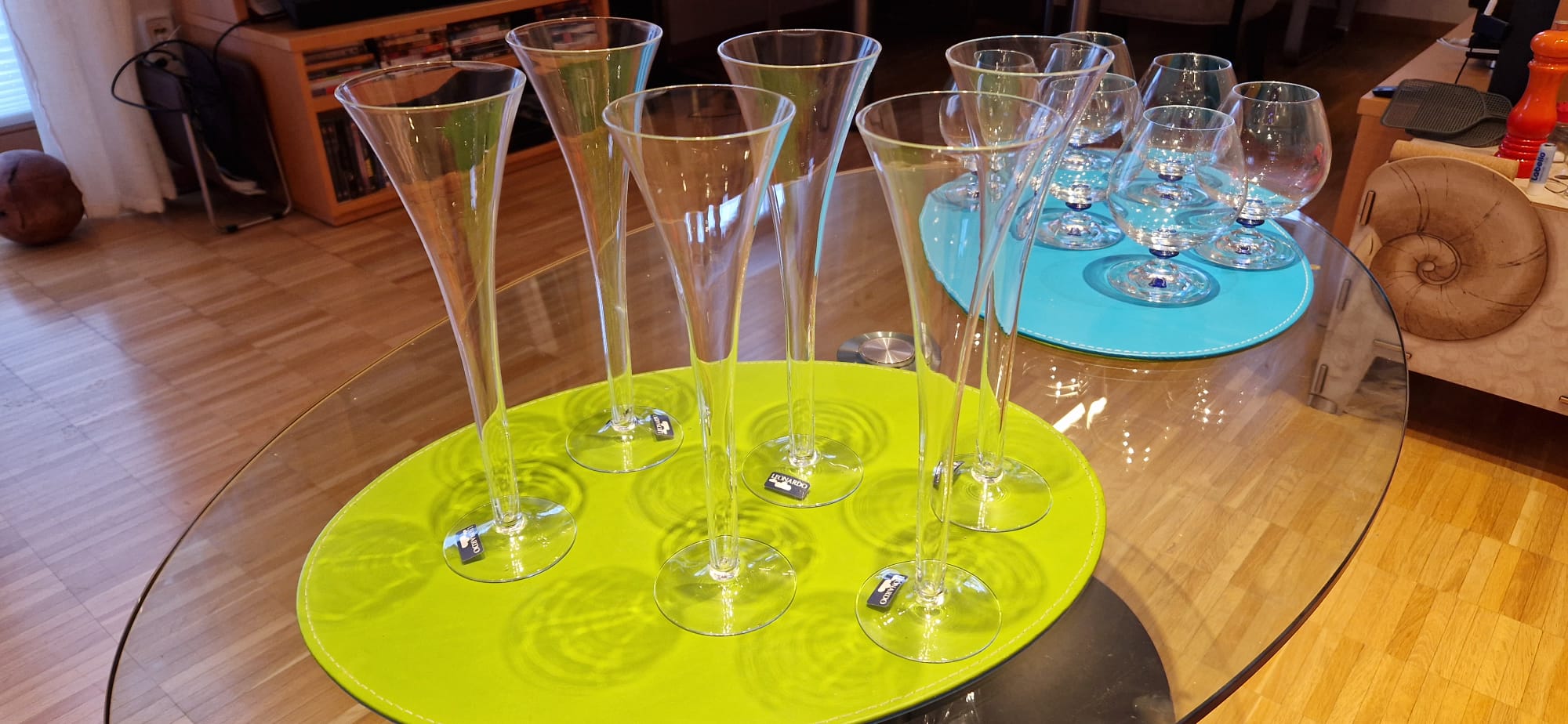 6 Leonardo Sektflöten, unbeschädigt, Höhe 25 cm, Durchmesser 7,5 cm