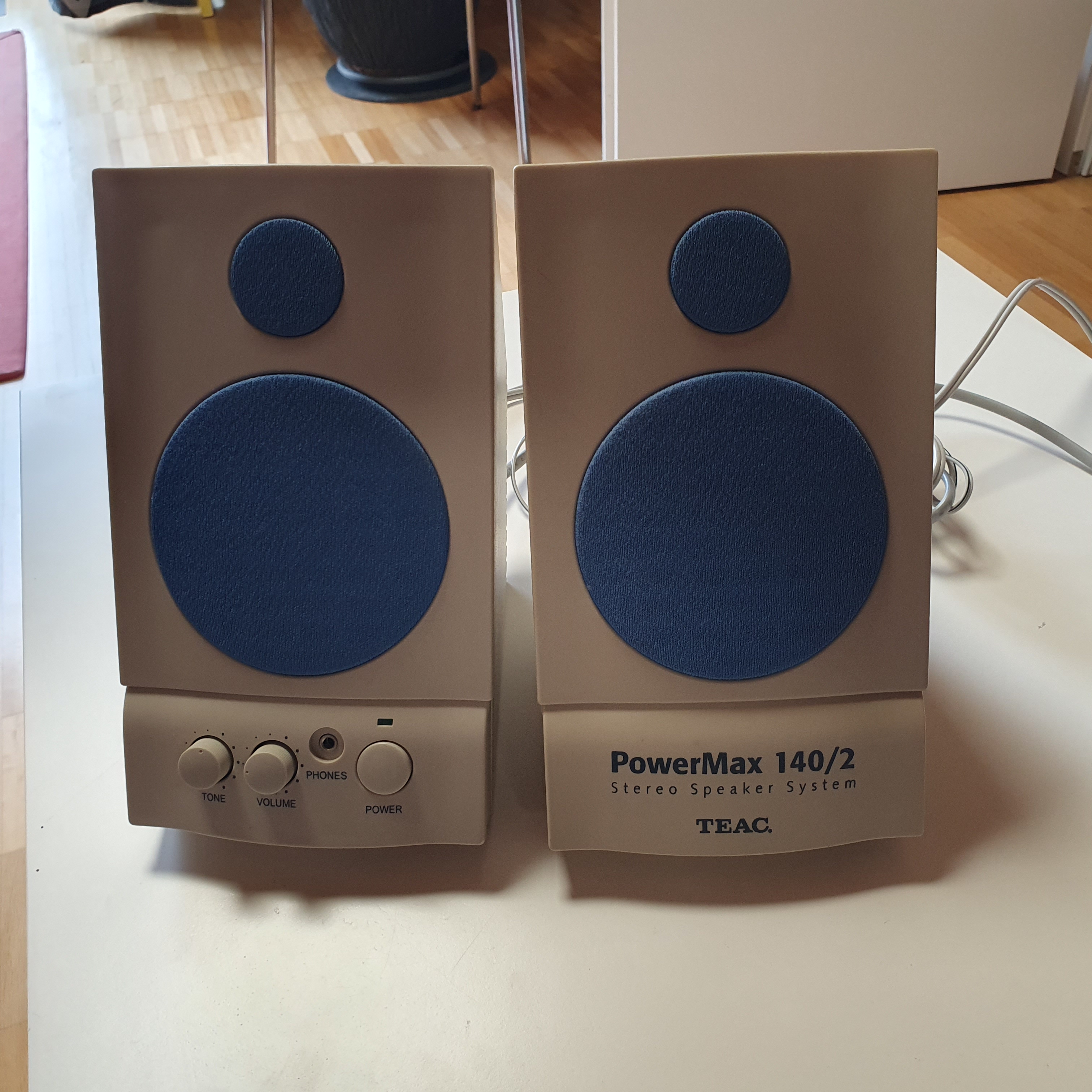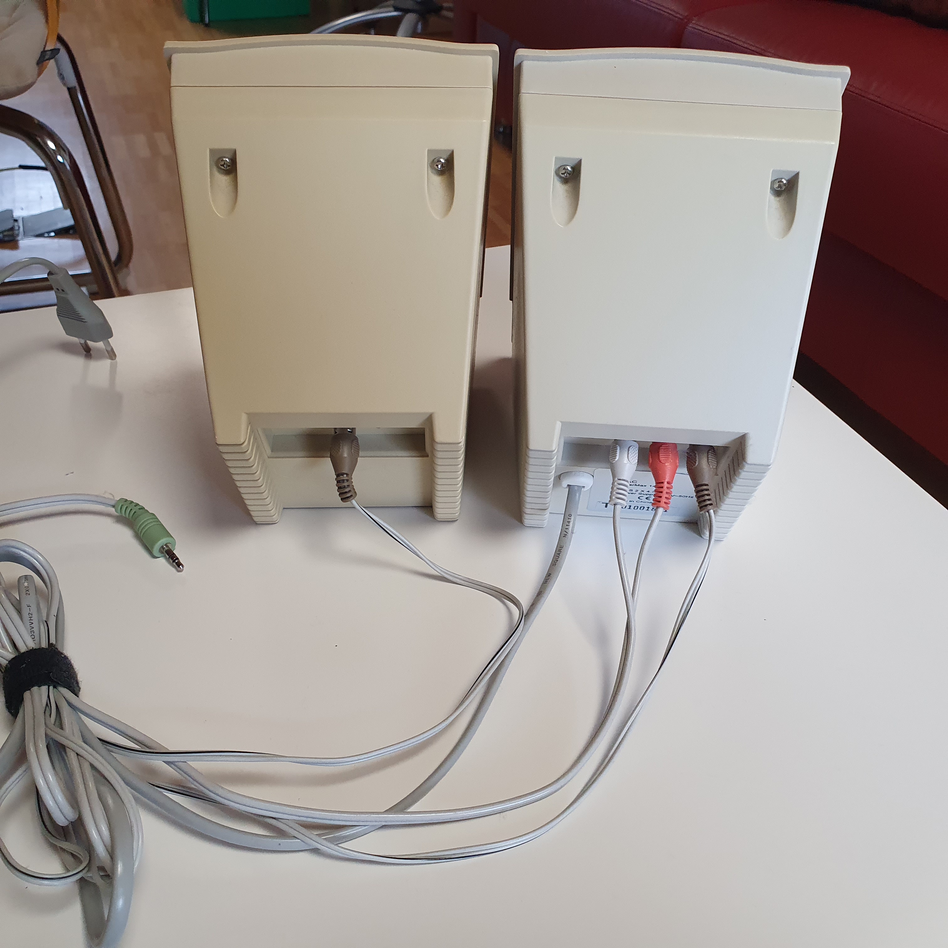 Zwei Paar Multimedia-Lautsprecher, älter und leicht vergilbt, aber funktionsfähig zum Abholen in Sachsenkam.