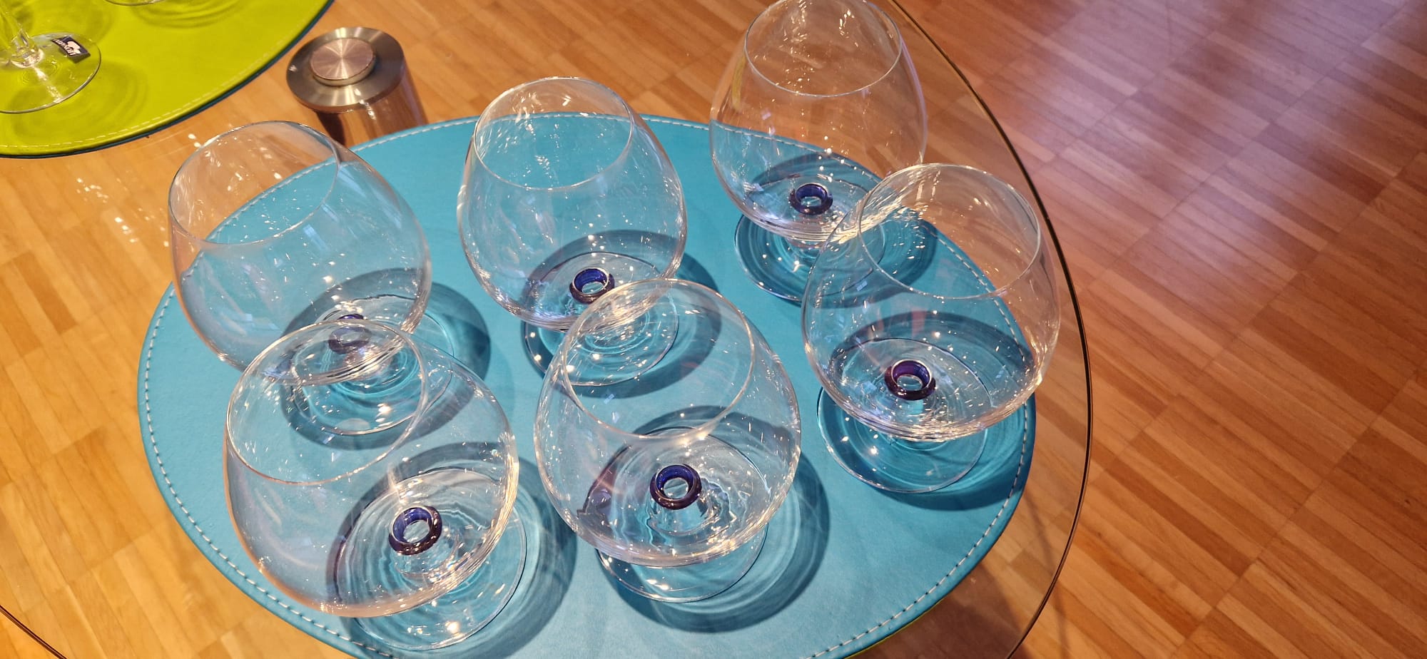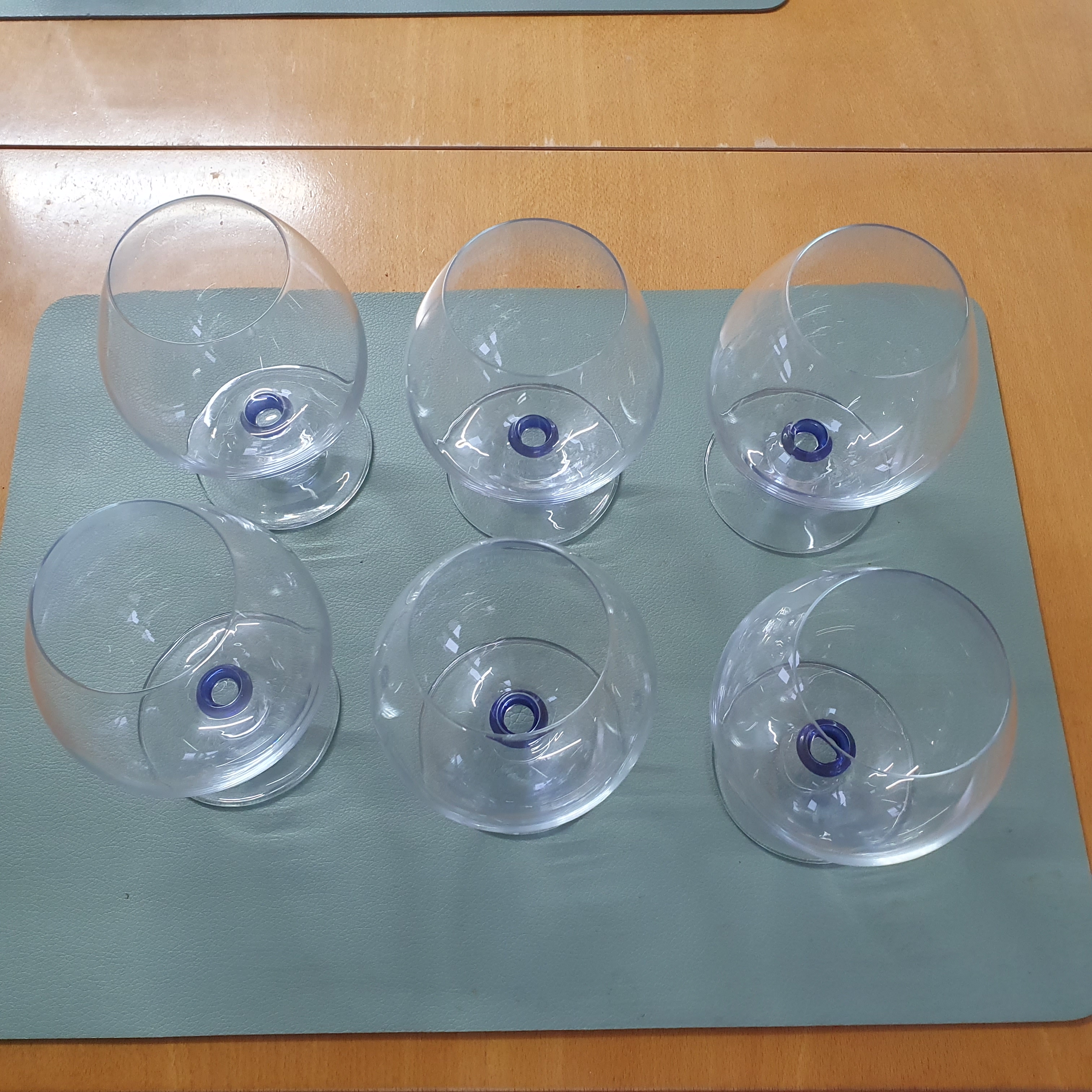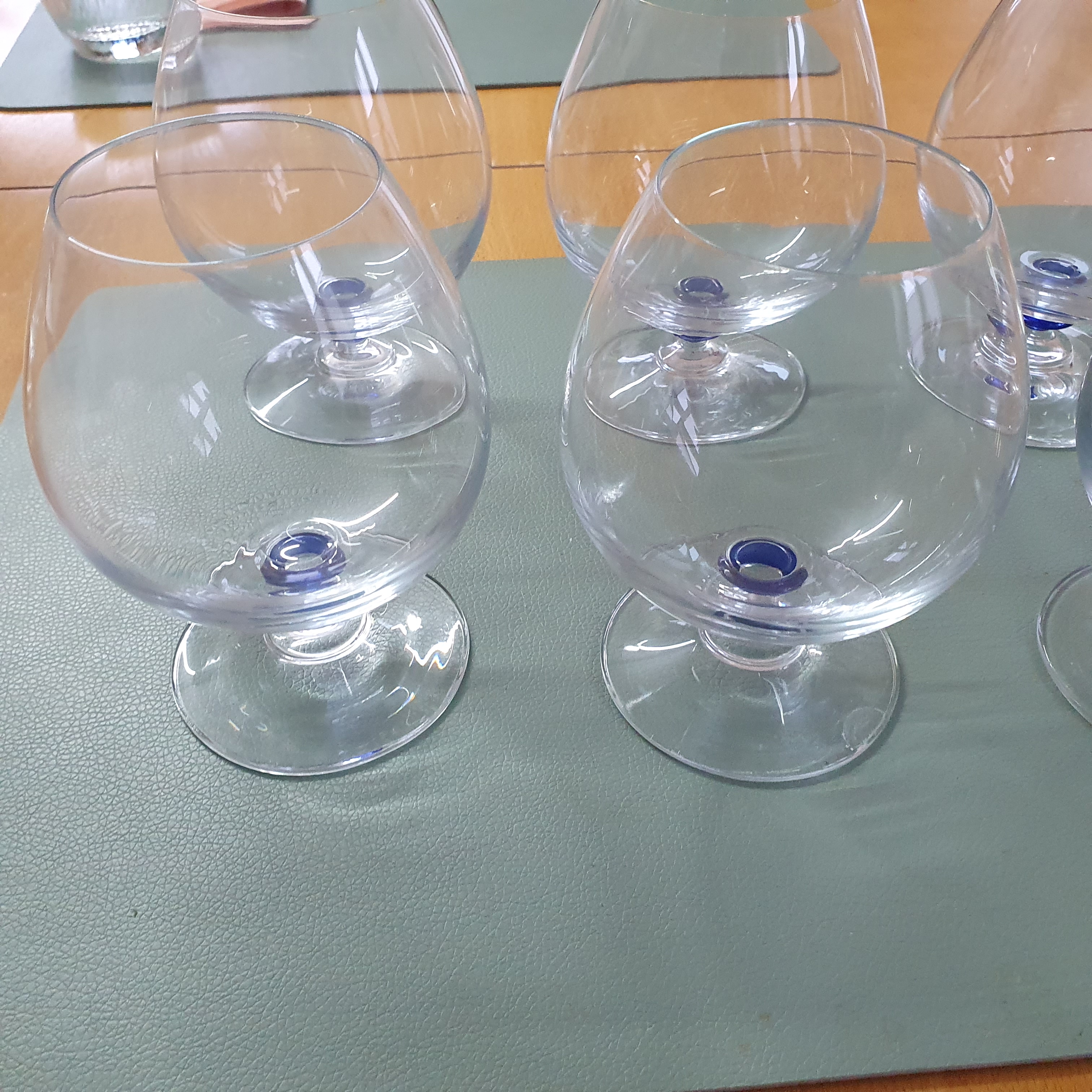 6 Cognacschwenker. Höhe ca. 14 cm, Durchmesser ca. 10 cm, mit blauem Ring. Keine Beschädigungen.